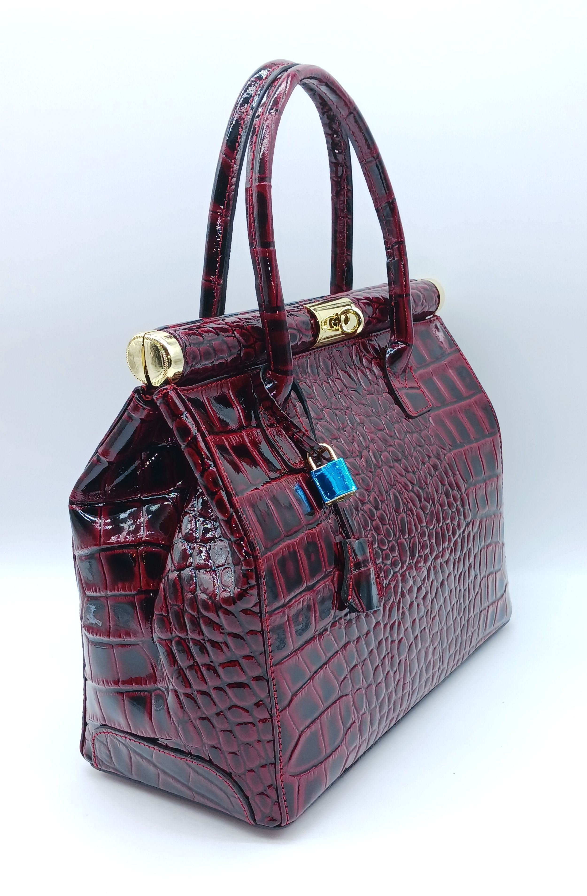 Lock & Key Genuine Croc Embossed Leather Handbag Satchel - Brown – Made In Italy"gigilove on Feb 12, 2024
