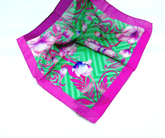 Italian Silk Handkerchief/Neckerchief Floral Square Scarf 17x17 – Made In Italy - Green, Pink, Purple
