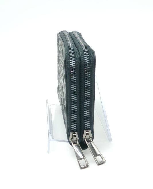 Genuine Croc Embossed Leather Double Zip Wallet – Made In Italy - Black