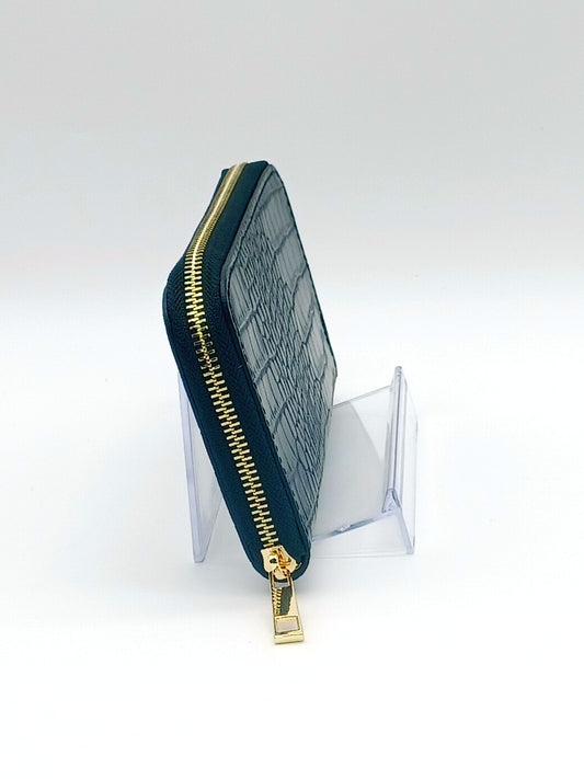 Genuine Croc Embossed Leather Zip Wallet – Made In Italy - Black