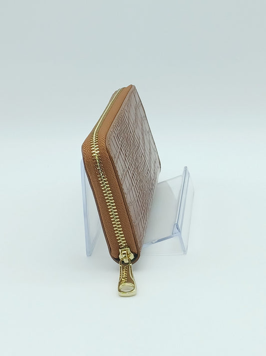 Genuine Croc Embossed Leather Zip Wallet – Made In Italy - Brown