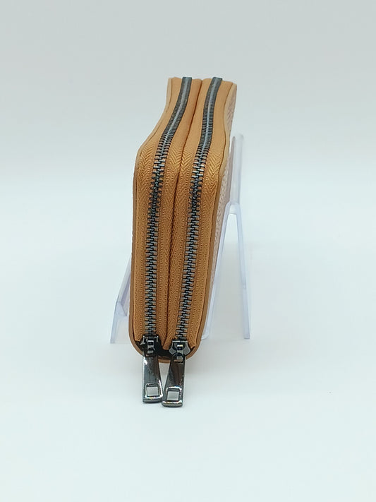 Genuine Pebble Leather Double Zip Wallet – Made In Italy - Cognac Brown