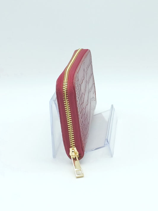 Genuine Croc Embossed Leather Zip Wallet – Made In Italy - Dark Red