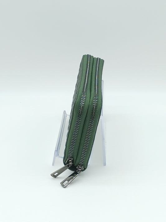 Genuine Croc Embossed Leather Double Zip Wallet – Made In Italy - Bottle Green