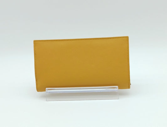 Italian Genuine Leather Wallet - Mustard Yellow/Navy Blue