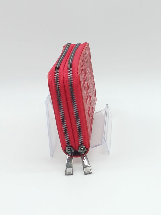 Genuine Croc Embossed Leather Double Zip Wallet – Made In Italy - Red