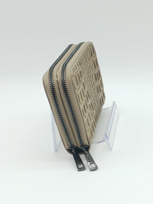 Genuine Croc Embossed Leather Double Zip Wallet – Made In Italy - Taupe