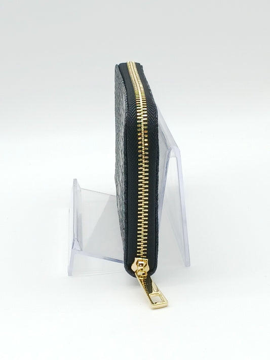 Genuine Snake Embossed Leather Zip Wallet – Made In Italy - Black