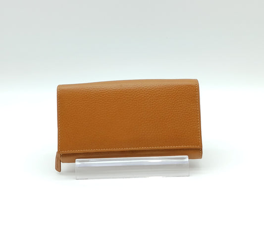 Italian Genuine Pebble Leather Wallet - Cognac Brown