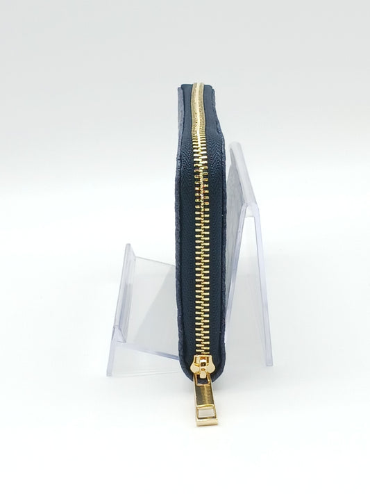 Genuine Snake Embossed Leather Zip Wallet – Made In Italy - Dark Blue
