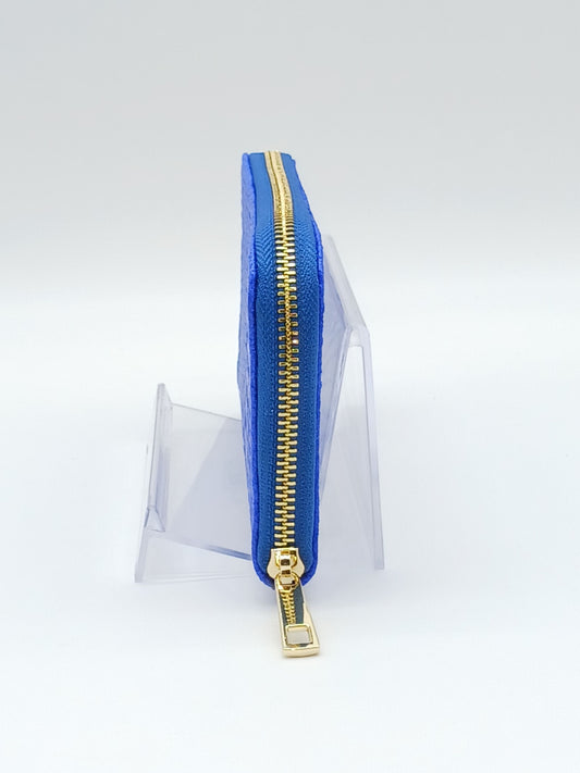 Genuine Snake Embossed Leather Zip Wallet – Made In Italy - Electric Blue