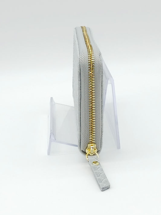 Genuine Snake Embossed Leather Zip Wallet – Made In Italy - Gray