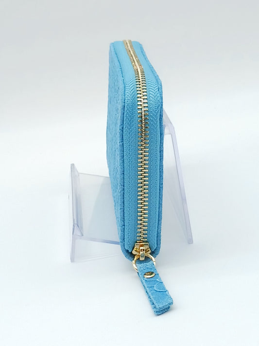Genuine Snake Embossed Leather Zip Wallet – Made In Italy - Light Blue