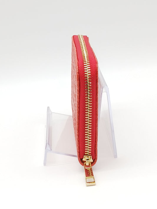 Genuine Snake Embossed Leather Zip Wallet – Made In Italy - Red