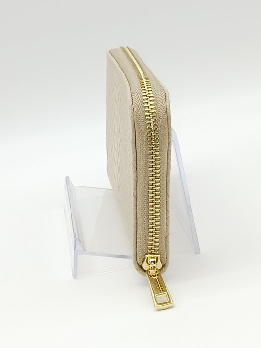 Genuine Snake Embossed Leather Zip Wallet – Made In Italy - Taupe