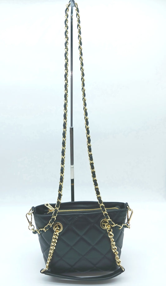 Genuine Leather Small Quilted Tote Crossbody Handbag – Made In Italy - Black