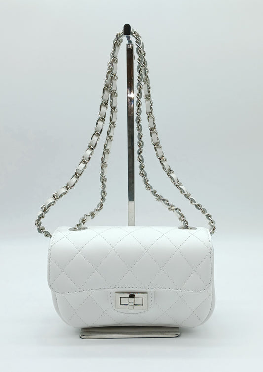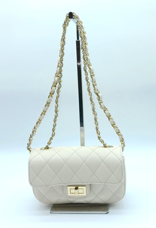 Genuine Leather Quilted Handbag (Small) – Made In Italy - White