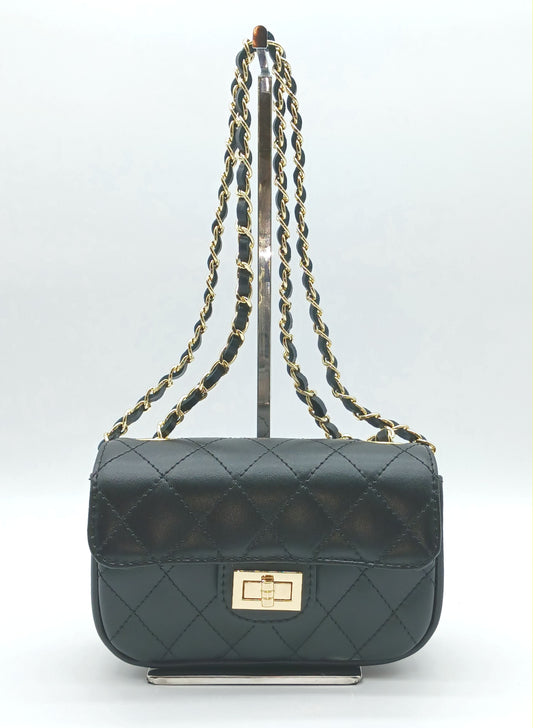 Genuine Leather Quilted Handbag (Small) – Made In Italy - Black