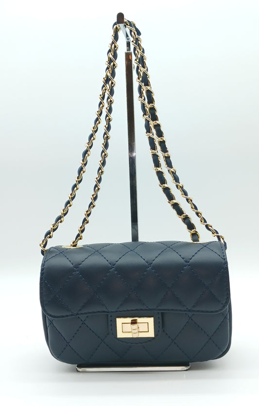 Genuine Leather Quilted Handbag (Small) – Made In Italy - Dark Blue