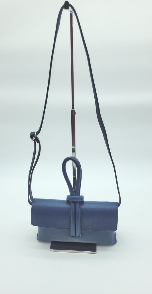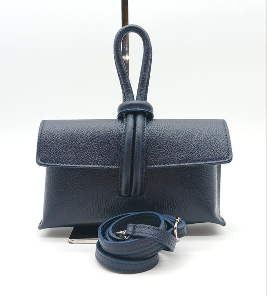 Genuine Pebble Leather Crossbody Handbag - Navy Blue – Made In Italy