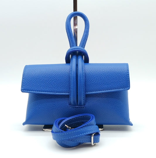 Genuine Pebble Leather Crossbody Handbag - Electric Blue – Made In Italy