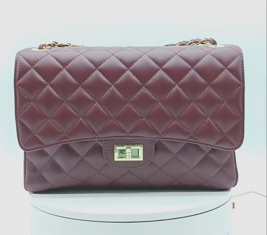 Genuine Leather Quilted Handbag (X-Large) Burgundy – Made In Italy