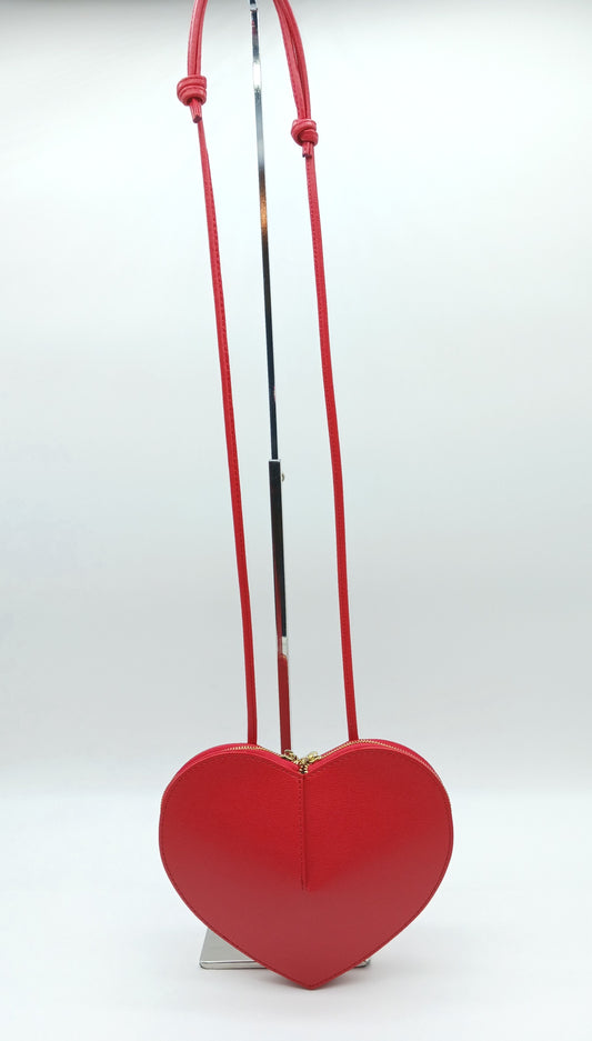 Genuine Saffiano Leather Heart Crossbody Handbag – Made In Italy - Red
