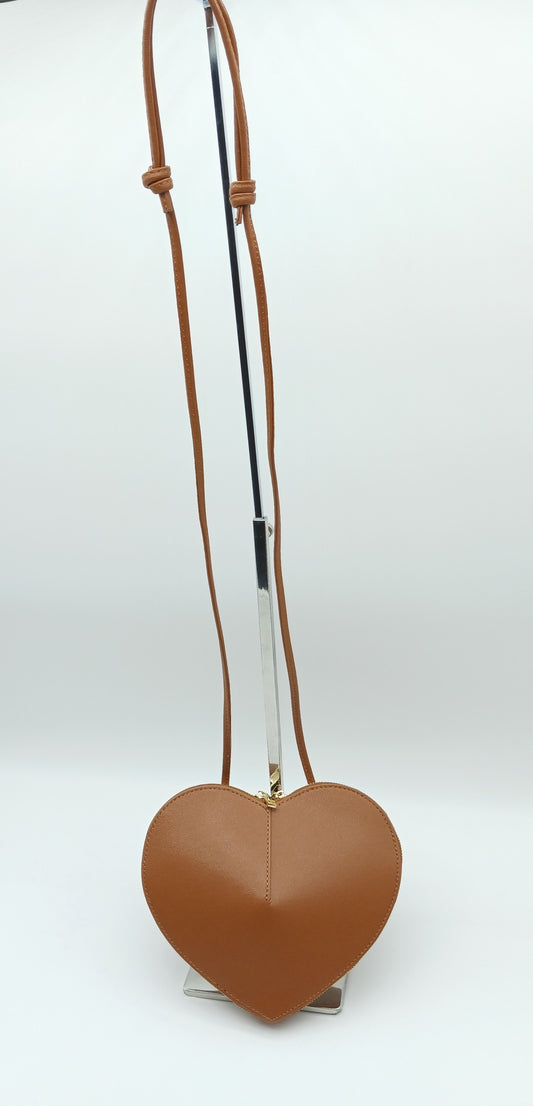 Genuine Saffiano Leather Heart Crossbody Handbag – Made In Italy - Cognac Brown