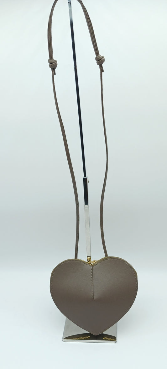 Genuine Saffiano Leather Heart Crossbody Handbag – Made In Italy - Dark Taupe
