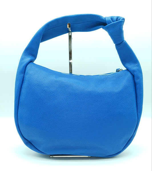 Genuine Pebble Leather Hobo Shoulder Handbag – Made In Italy - Electric Blue
