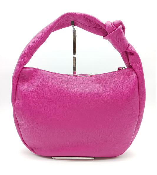 Genuine Pebble Leather Hobo Shoulder Handbag – Made In Italy - Fuchsia