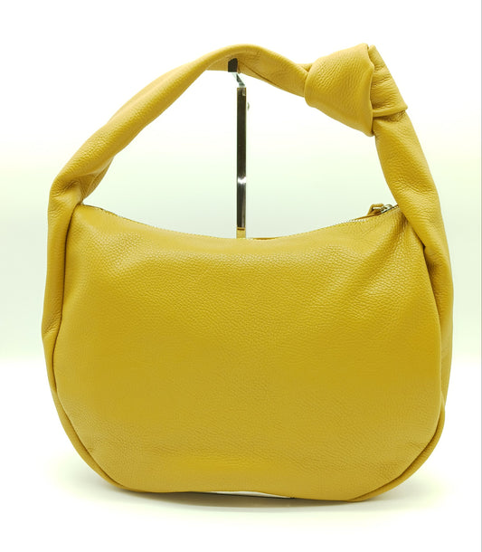 Genuine Pebble Leather Hobo Shoulder Handbag – Made In Italy - Mustard Yellow