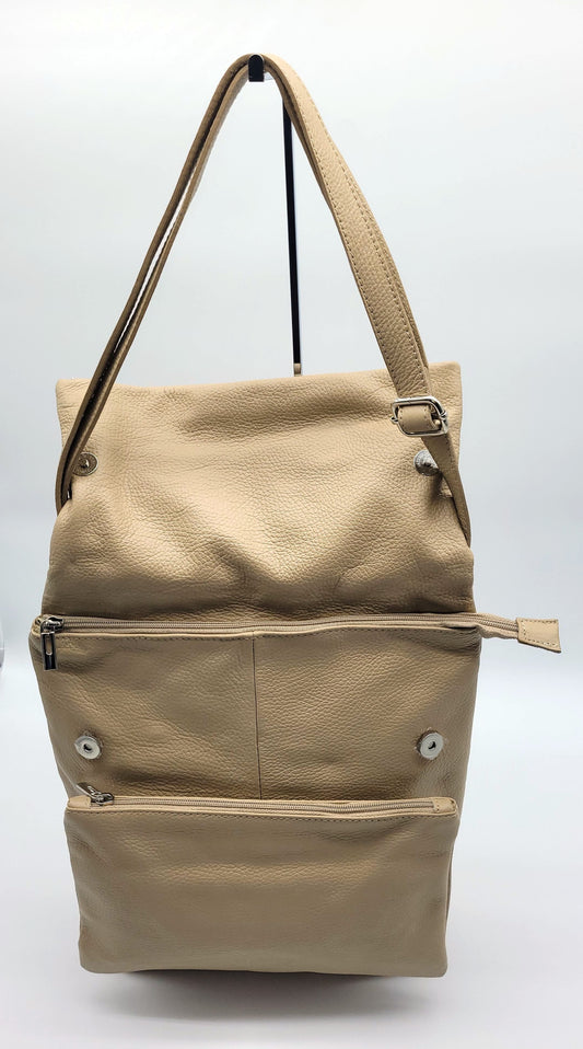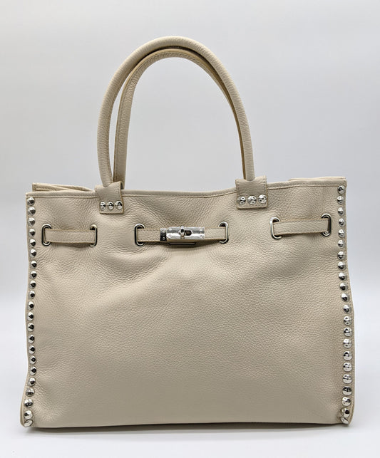 Genuine Pebble Leather Studded Satchel - Beige – Made In Italy