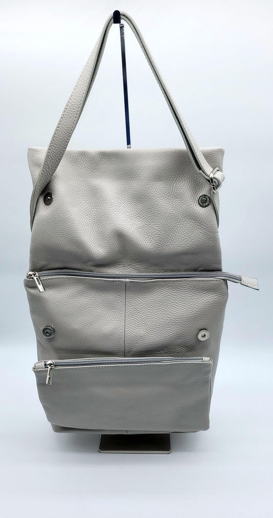 Genuine Pebble Leather Shoulder Crossbody Handbag - Pearl Gray – Made In Italy