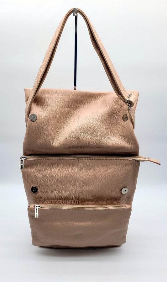 Genuine Pebble Leather Shoulder Crossbody Handbag - Pink – Made In Italy