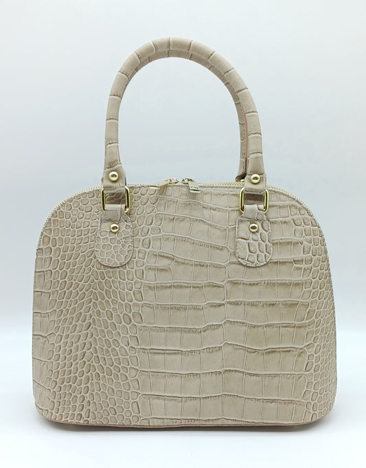 Taupe Italian Croc Embossed Genuine Leather Handbag Satchel – Made In Italy
