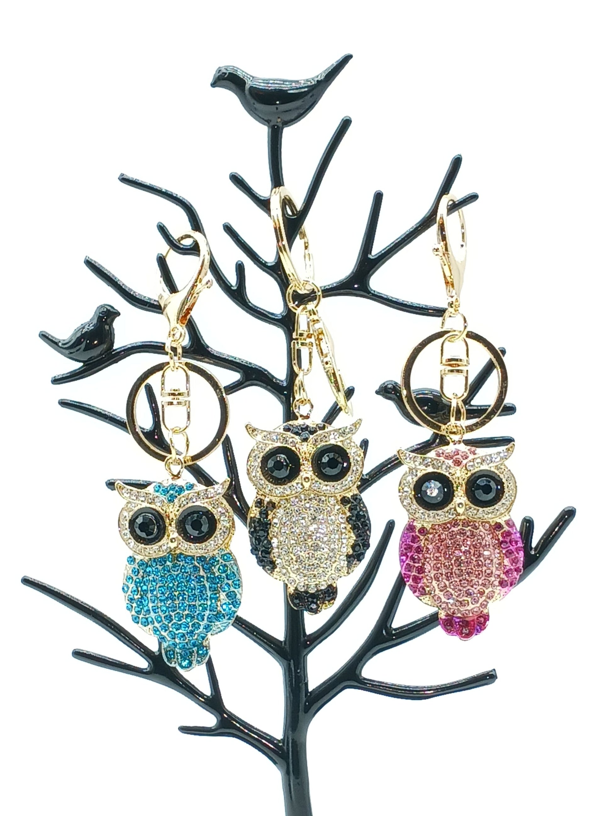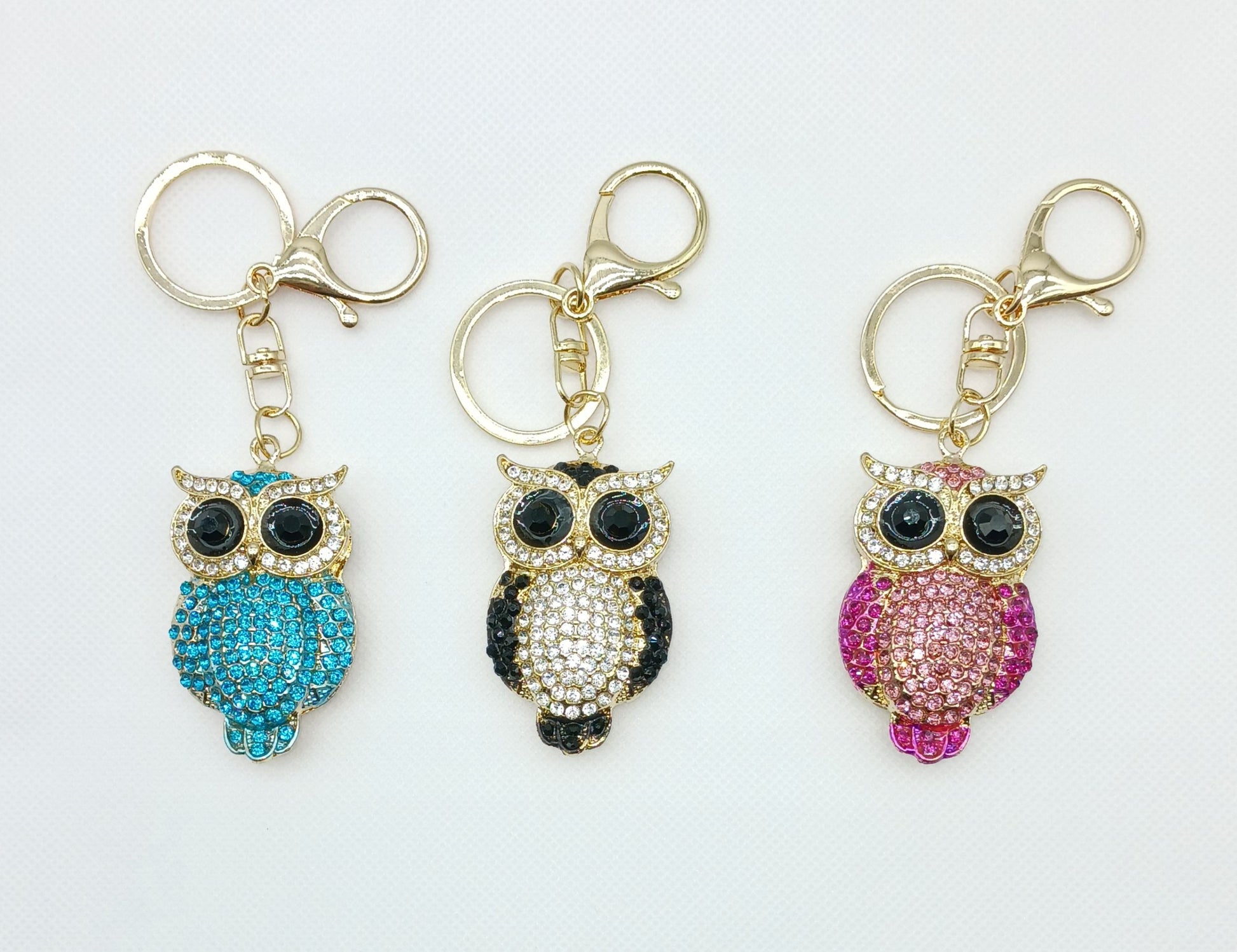 Bling Owl Rhinestone Alloy Keychain Bag Charm