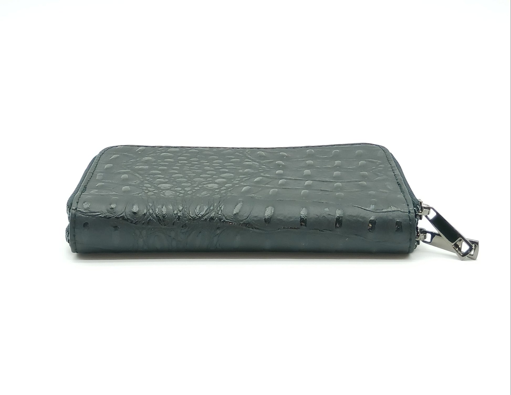 Genuine Croc Embossed Leather Double Zip Wallet – Made In Italy - Black