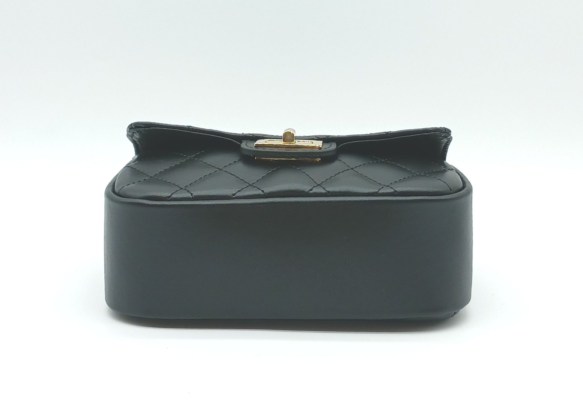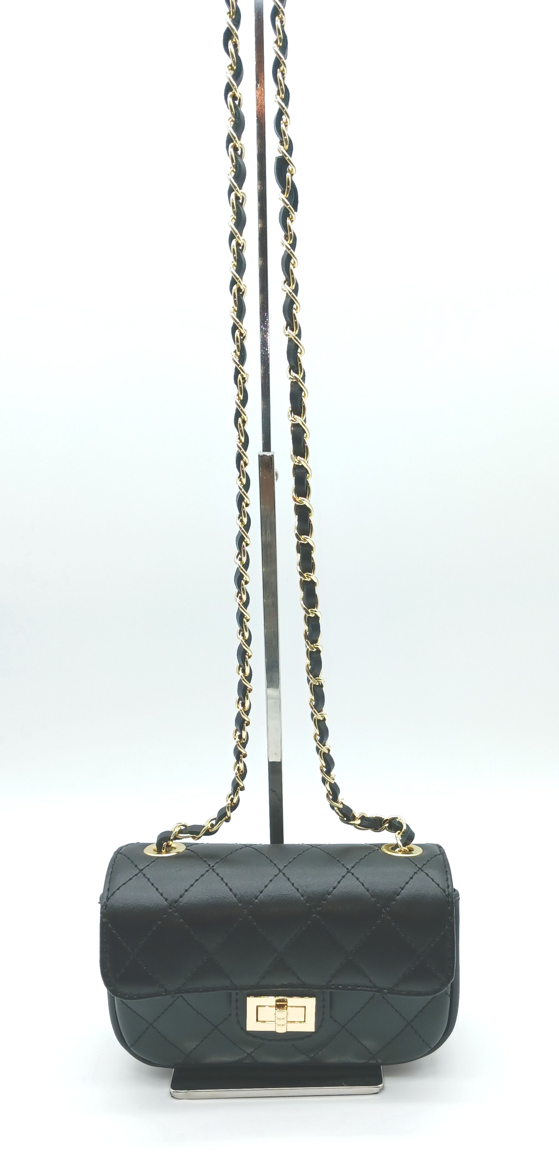Genuine Leather Quilted Handbag (Small) – Made In Italy - Black