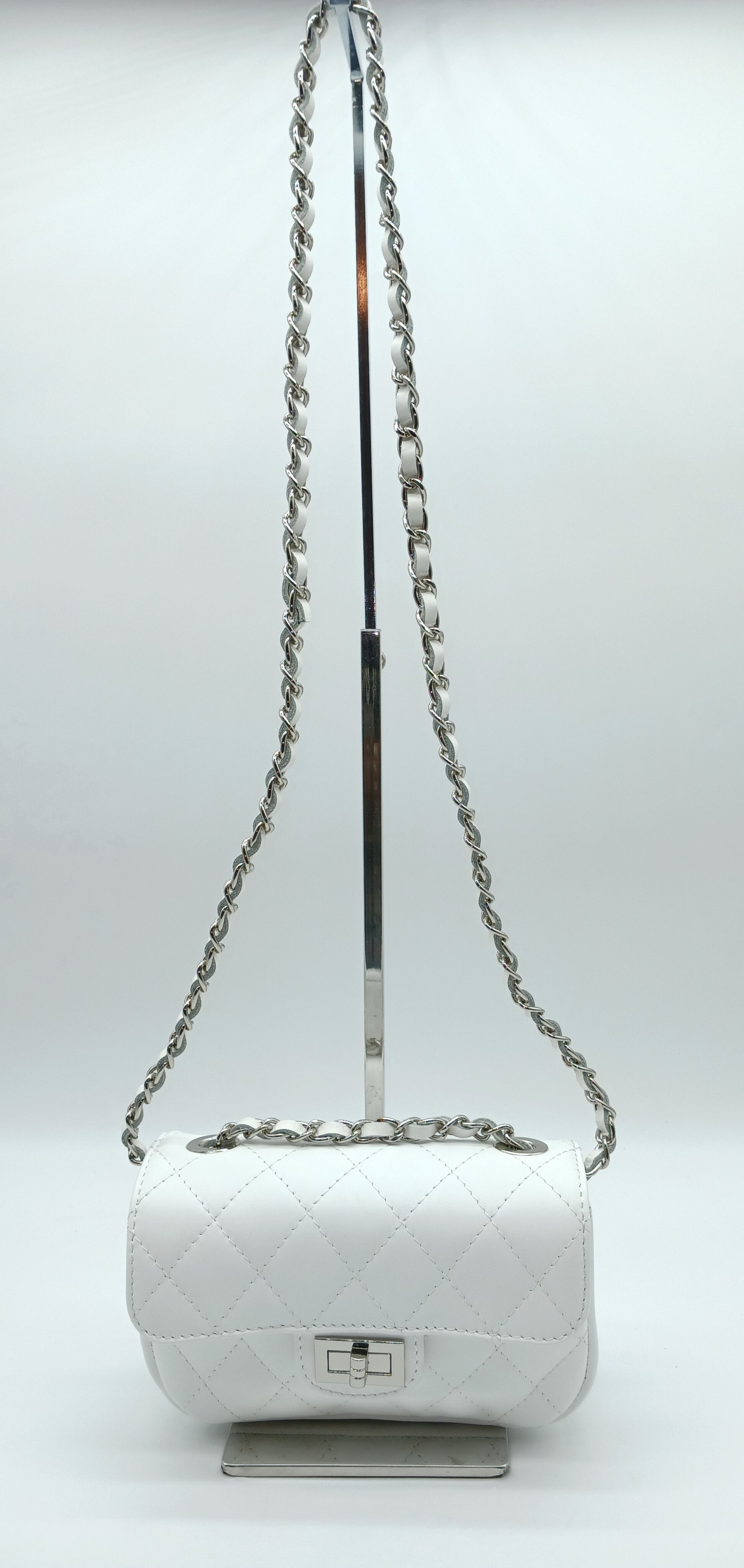 Genuine Leather Quilted Handbag (Small) – Made In Italy - White