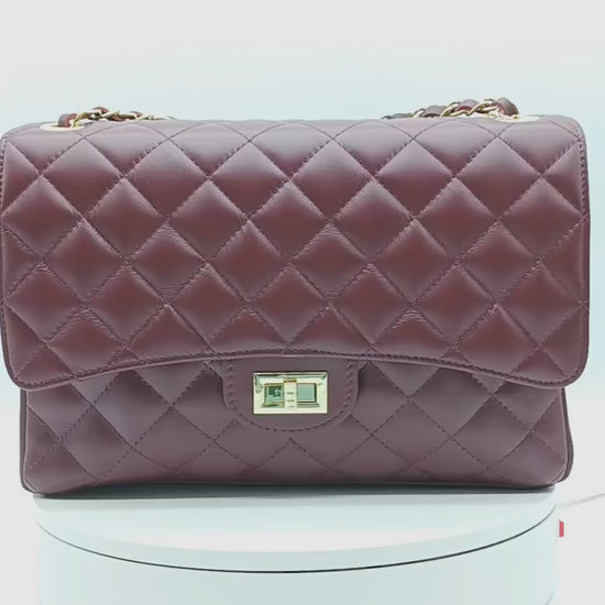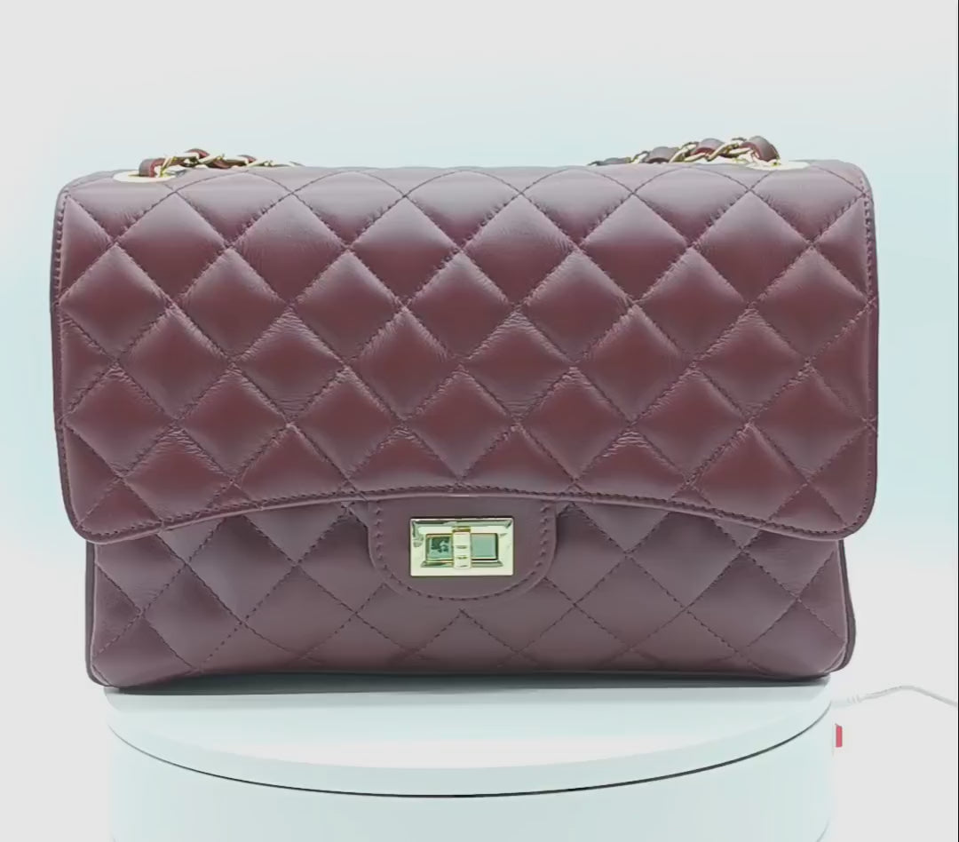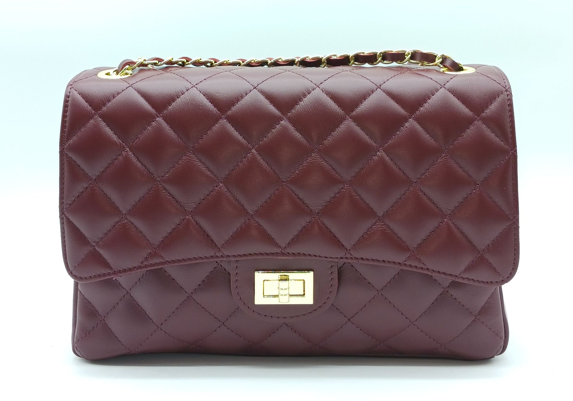 Genuine Leather Quilted Handbag (X-Large) Burgundy – Made In Italy