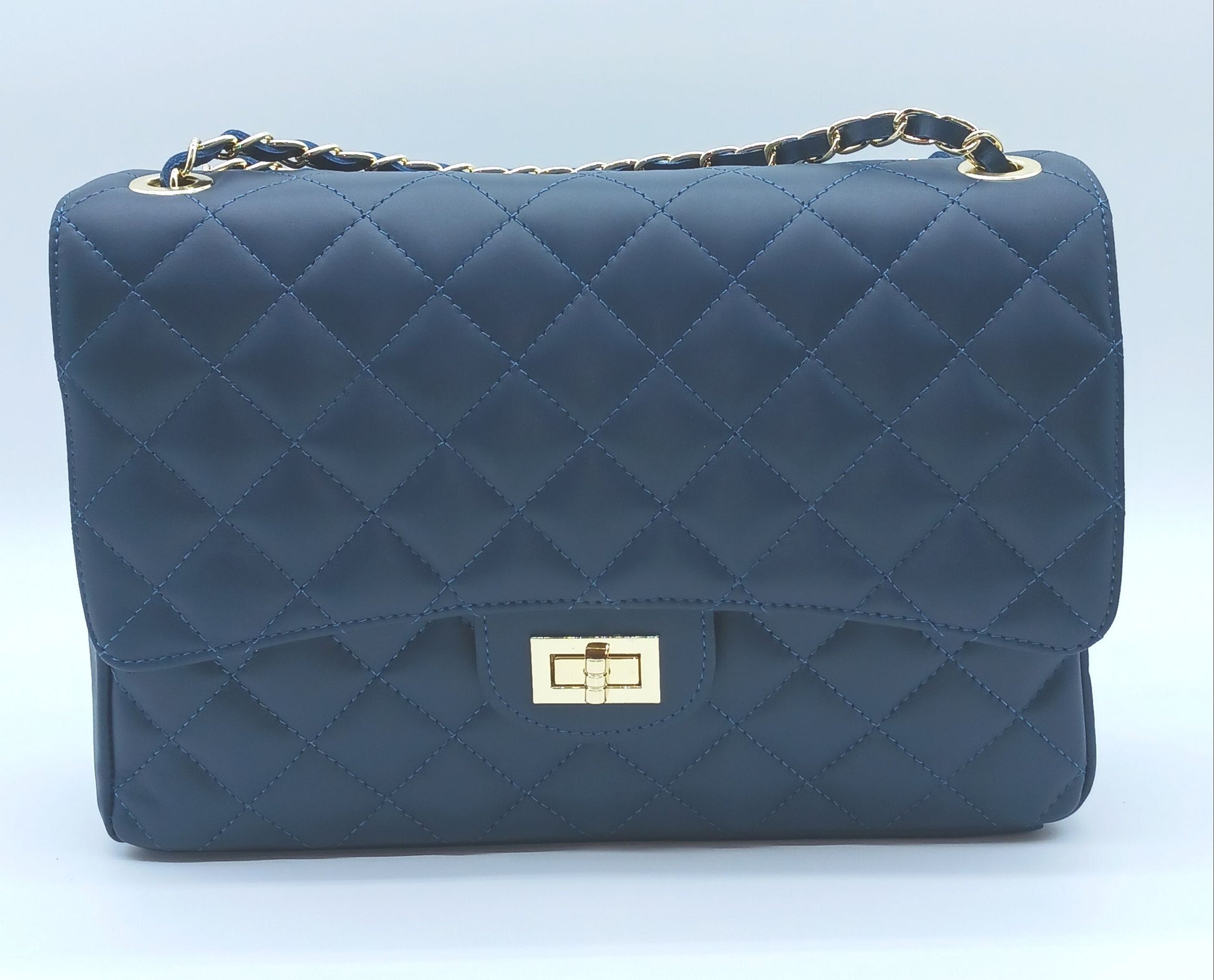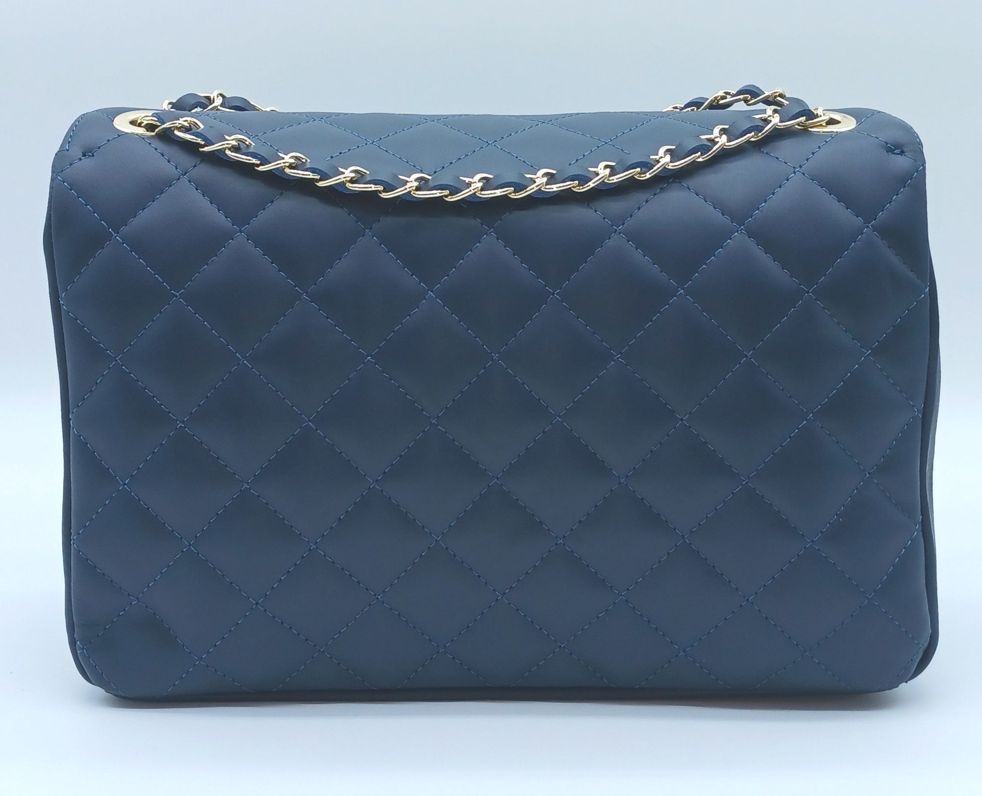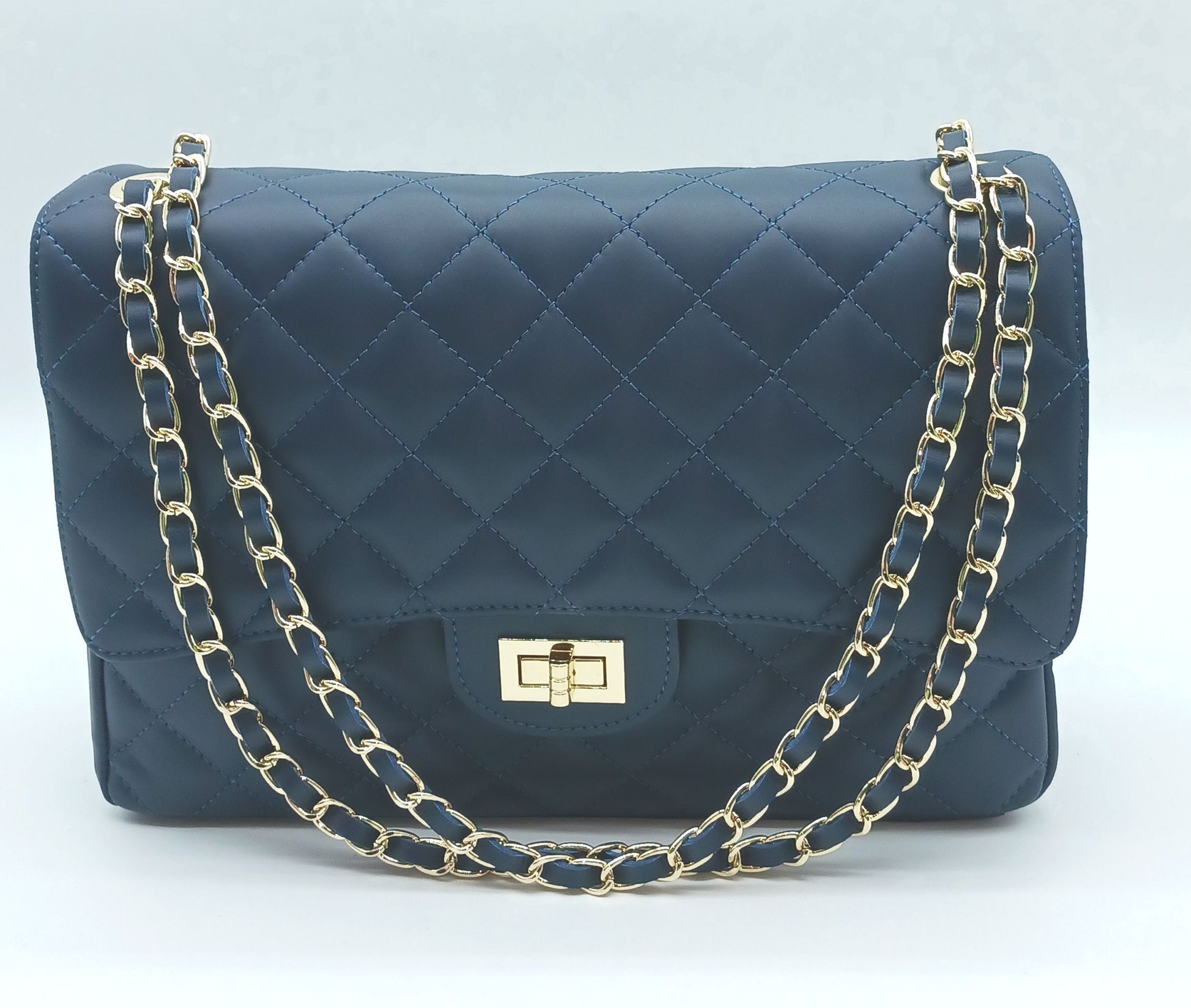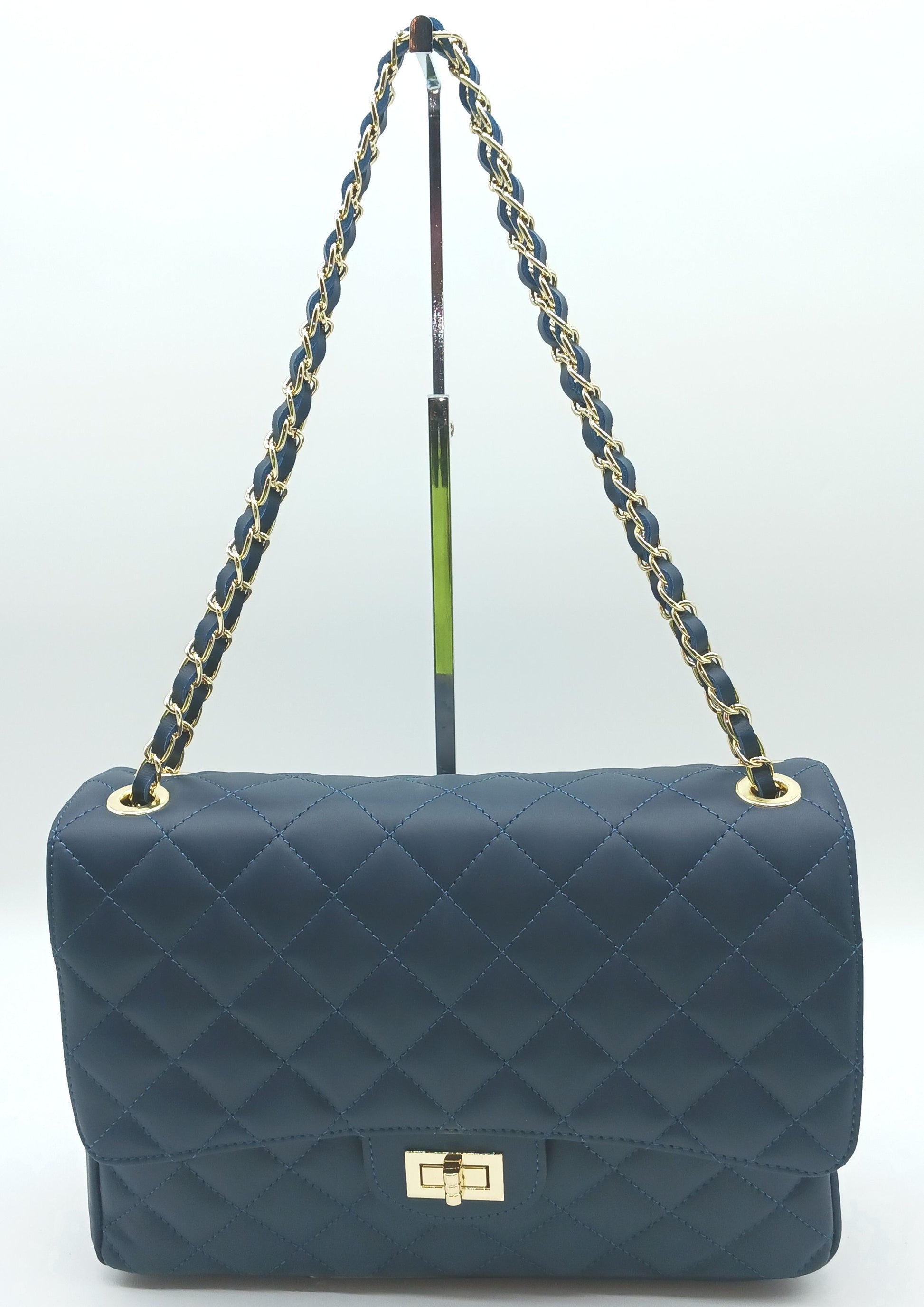 Genuine Leather Quilted Handbag (X-Large) Dark Blue – Made In Italy