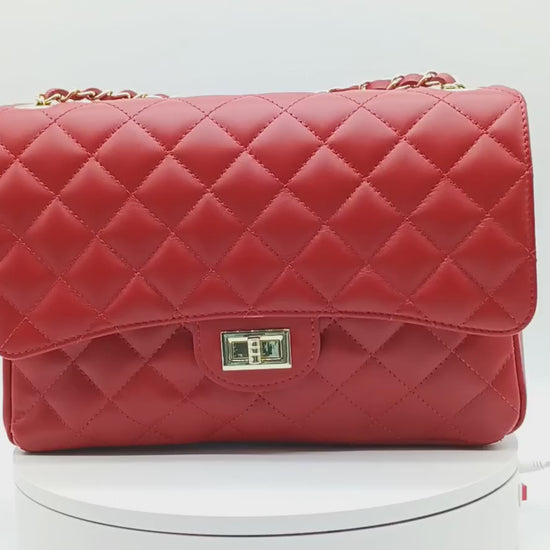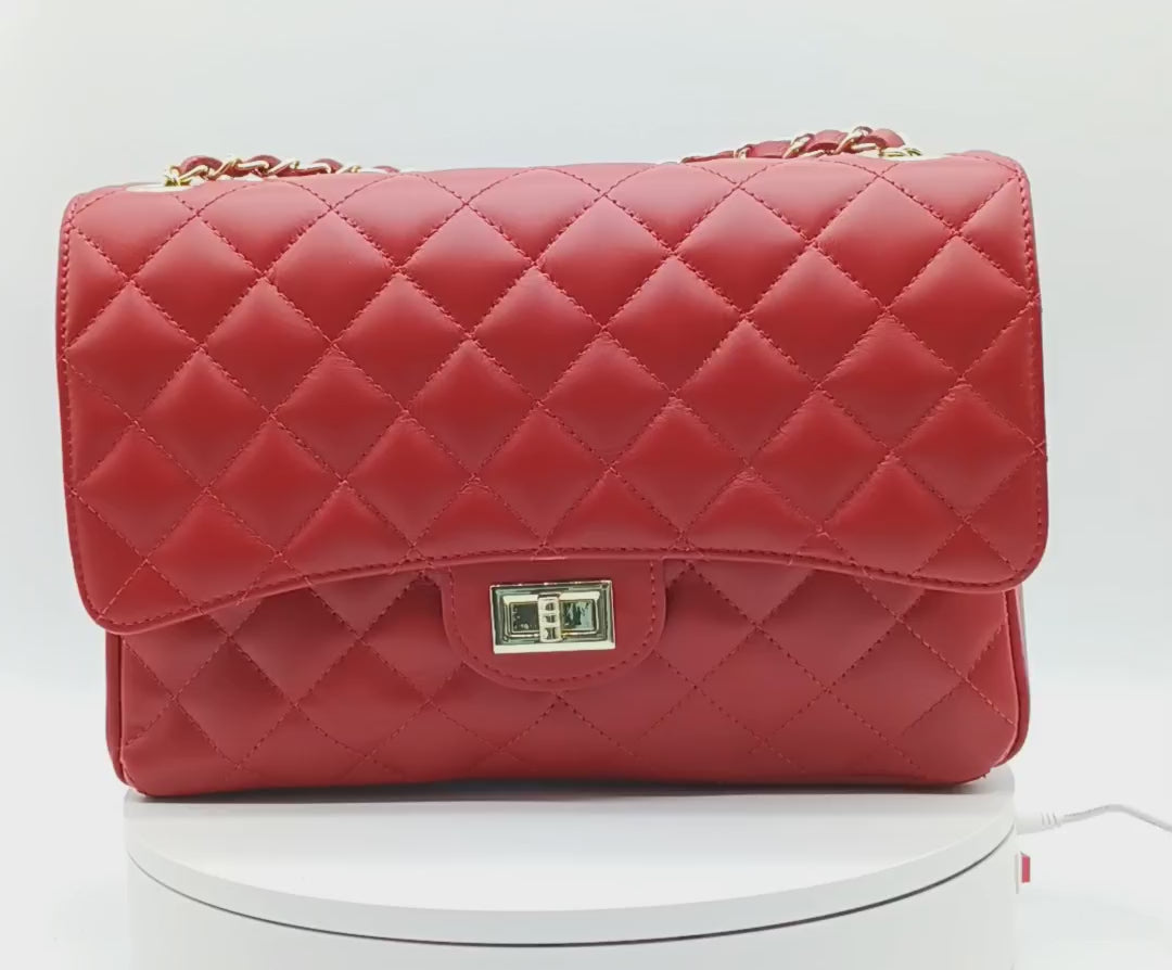 Genuine Leather Quilted Handbag (X-Large) Red – Made In Italy