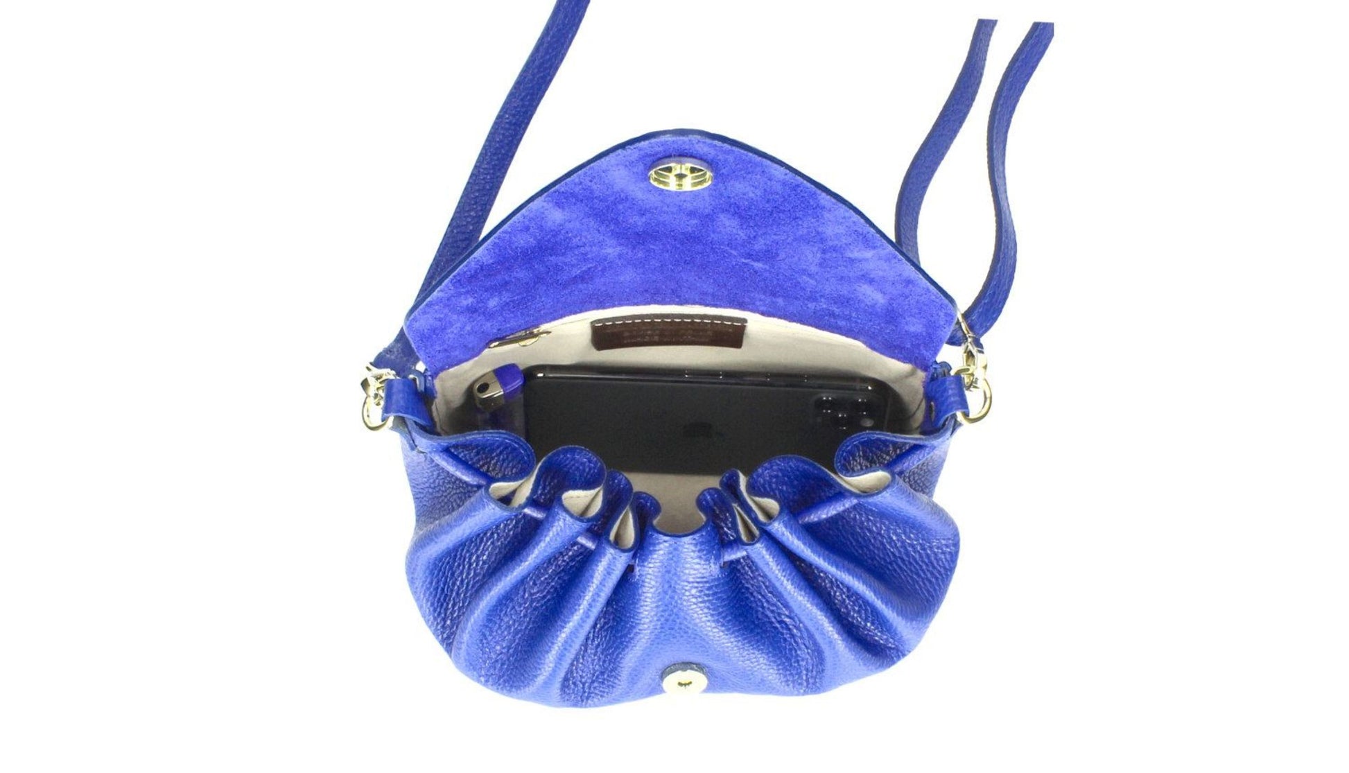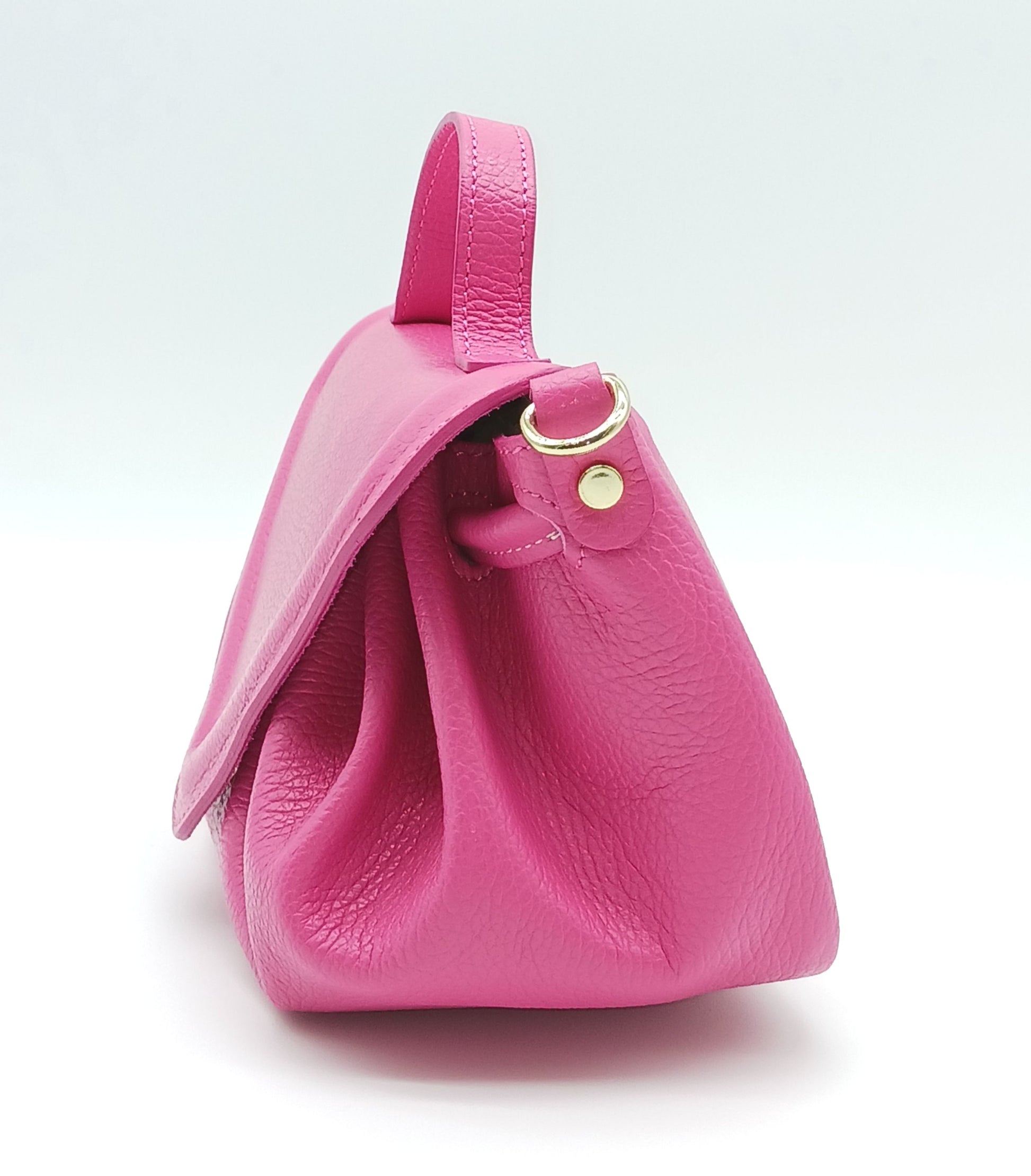 Fuchsia Genuine Pebble Leather Crossbody Handbag – Made In Italy