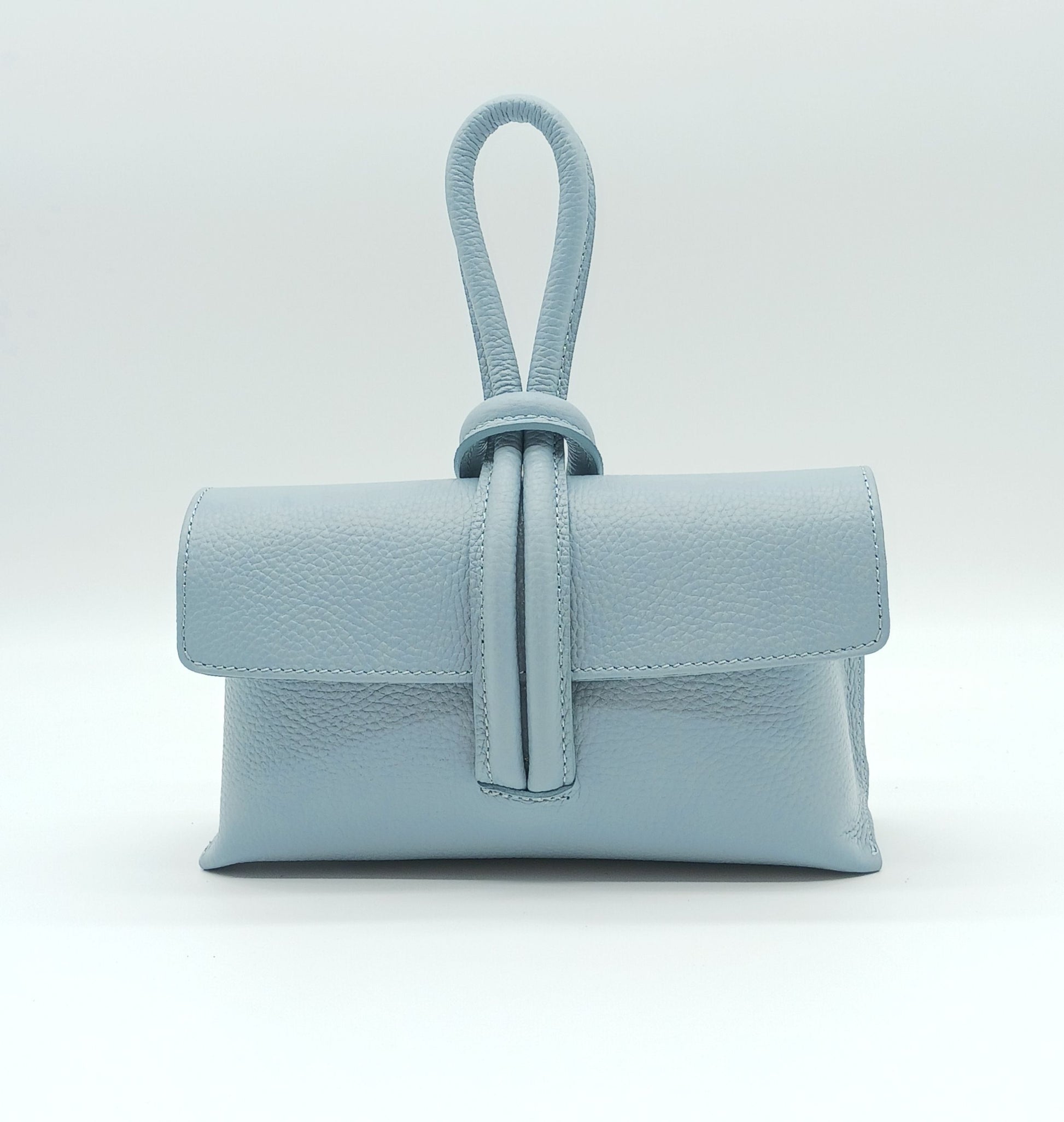 Genuine Pebble Leather Crossbody Handbag - Light Blue – Made In Italy