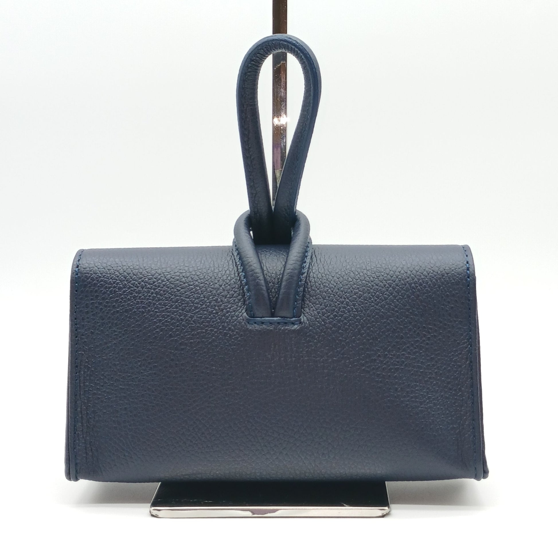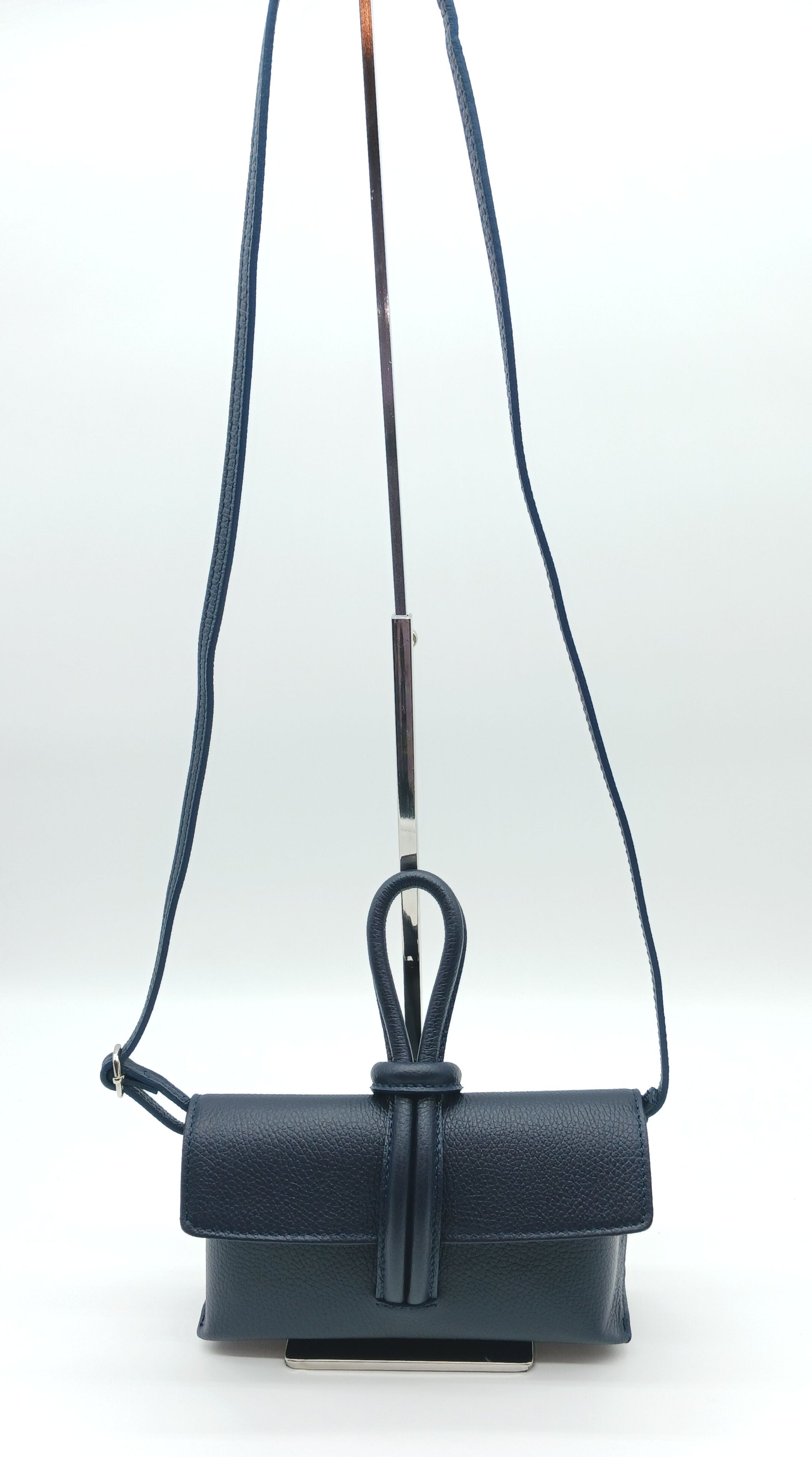 Genuine Pebble Leather Crossbody Handbag - Navy Blue – Made In Italy