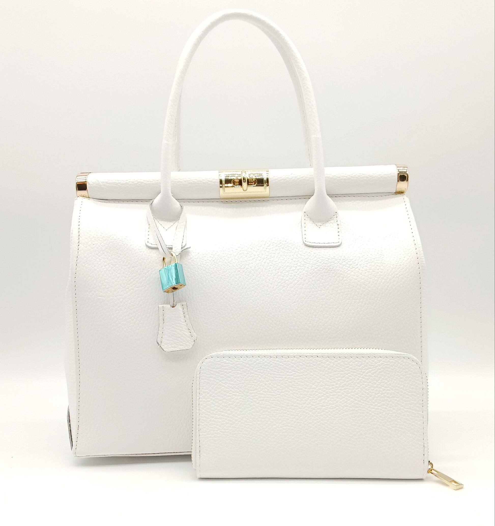 Genuine Pebble Leather Zip Wallet – Made In Italy - White