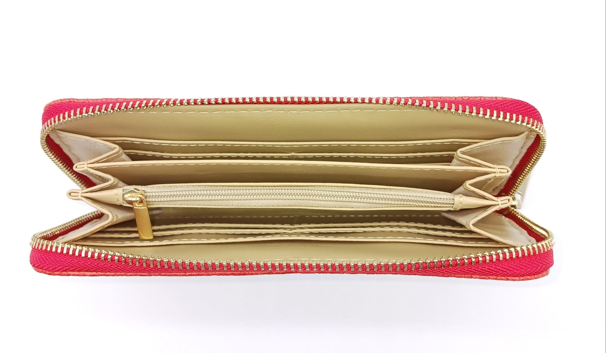 Genuine Snake Embossed Leather Zip Wallet – Made In Italy - Red