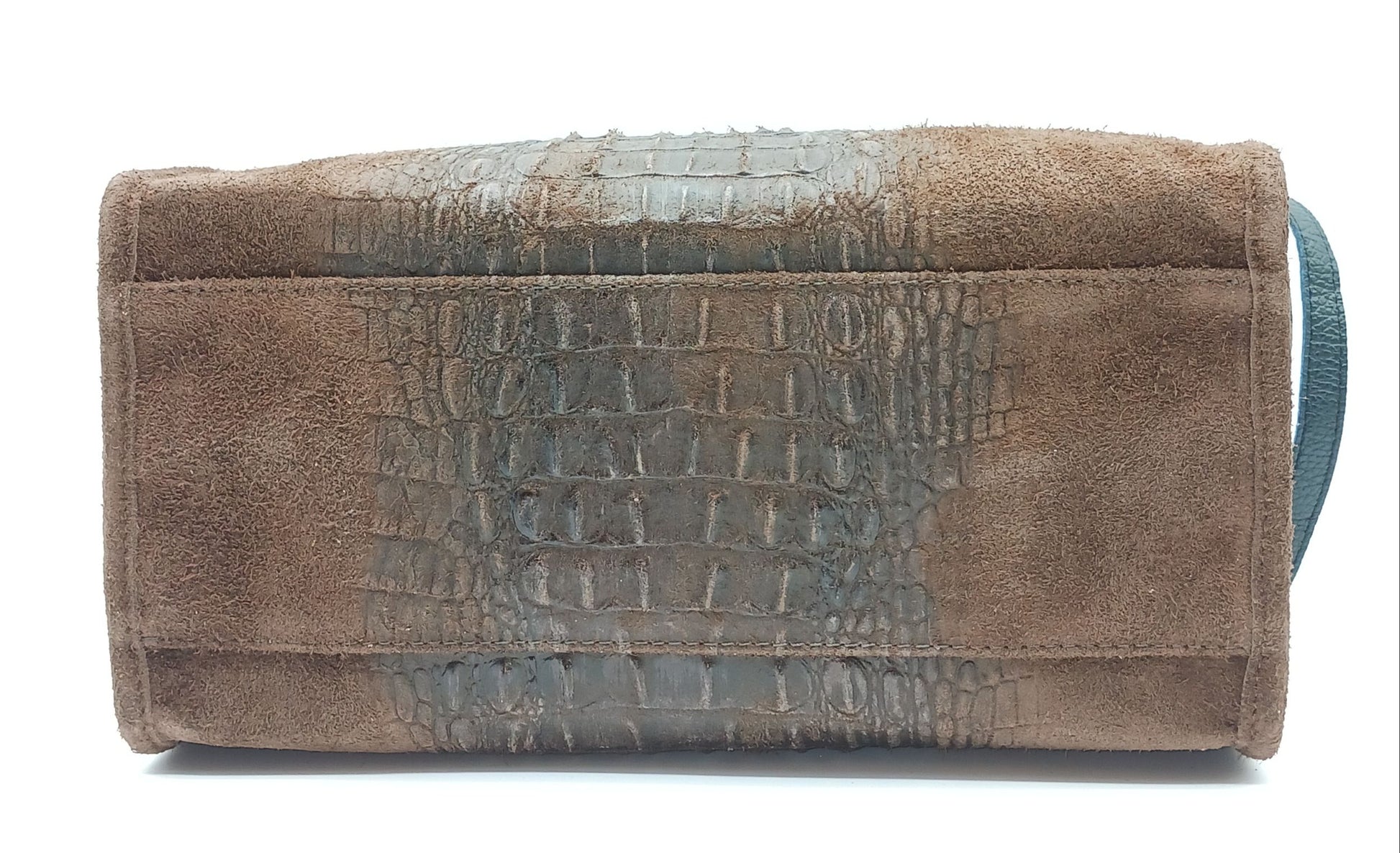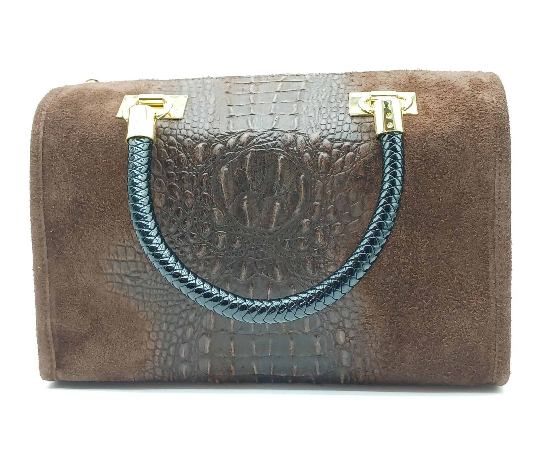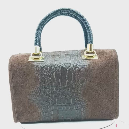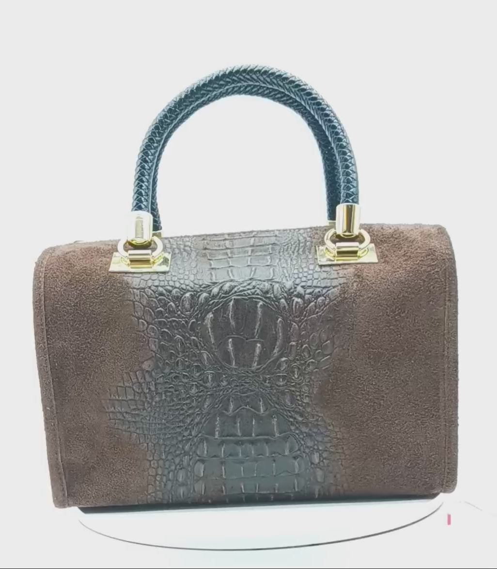 Genuine Suede & Leather Croc Embossed Satchel Handbag - Dark Brown – Made In Italy