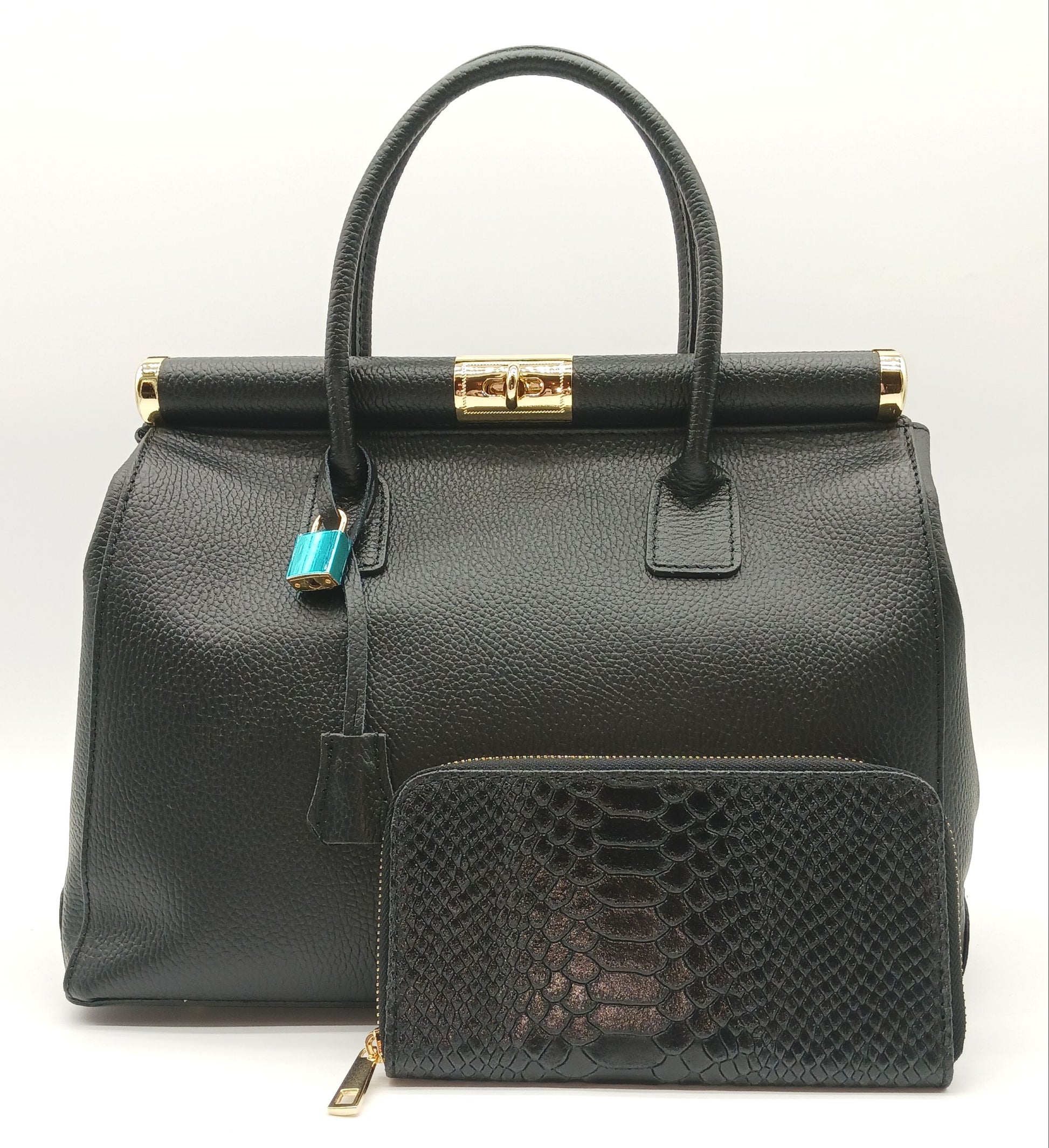 Genuine Snake Embossed Leather Zip Wallet – Made In Italy - Black
